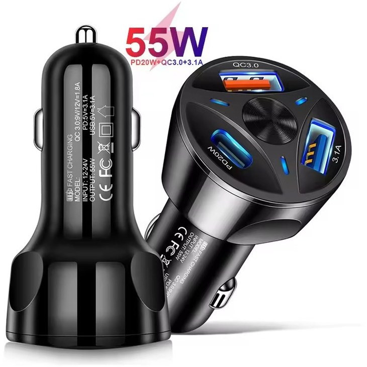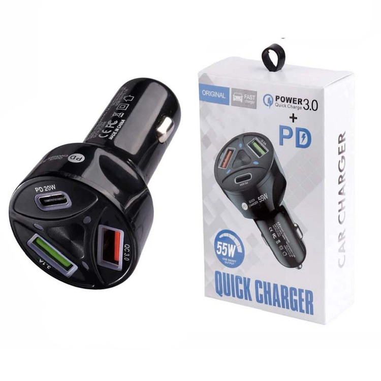 شارژر فندکی PD فست شارژ 55 وات سه پورت مدل MLE-003
